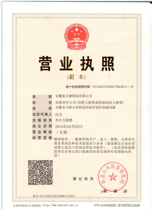 安徽索立德鑄業(yè)有限公司 位于馬鞍山市和縣經(jīng)濟(jì)開(kāi)發(fā)區(qū),公司成立于1992年,主要致力高品質(zhì)的鑄件生產(chǎn),經(jīng)過(guò)不斷發(fā)展壯大,于2015年擴(kuò)大生產(chǎn)規(guī)模,新廠(chǎng)于2015年8月份投產(chǎn),總投資2億人民幣,砂鑄廠(chǎng)房建筑面積60000㎡,擁有呋喃、堿酚醛樹(shù)脂砂生產(chǎn)線(xiàn)各2條(包含40t/h移動(dòng)式混砂機(jī),20t/h及10t/h固定式混砂機(jī))0.5T/1T/2T/3T/6T中頻電爐各2臺(tái),15T保溫爐1臺(tái);各類(lèi)拋丸機(jī)及熱處理設(shè)備等多臺(tái)套鑄造設(shè)備,同時(shí)具備完善的檢測(cè)能力。