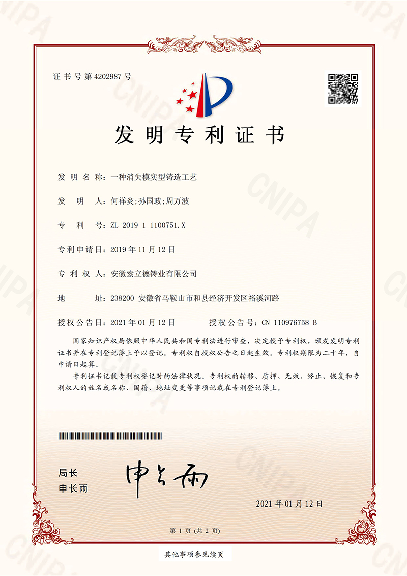 CN110976758B-發(fā)明專利證書